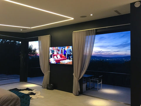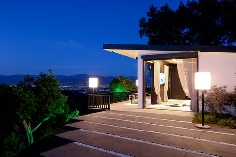 Mulholland Guest House with modern LED accents deep color palette and an unifying LED linear solution integrated into the millwork, ceiling and walls for a very rich and deep color infused hide-away.